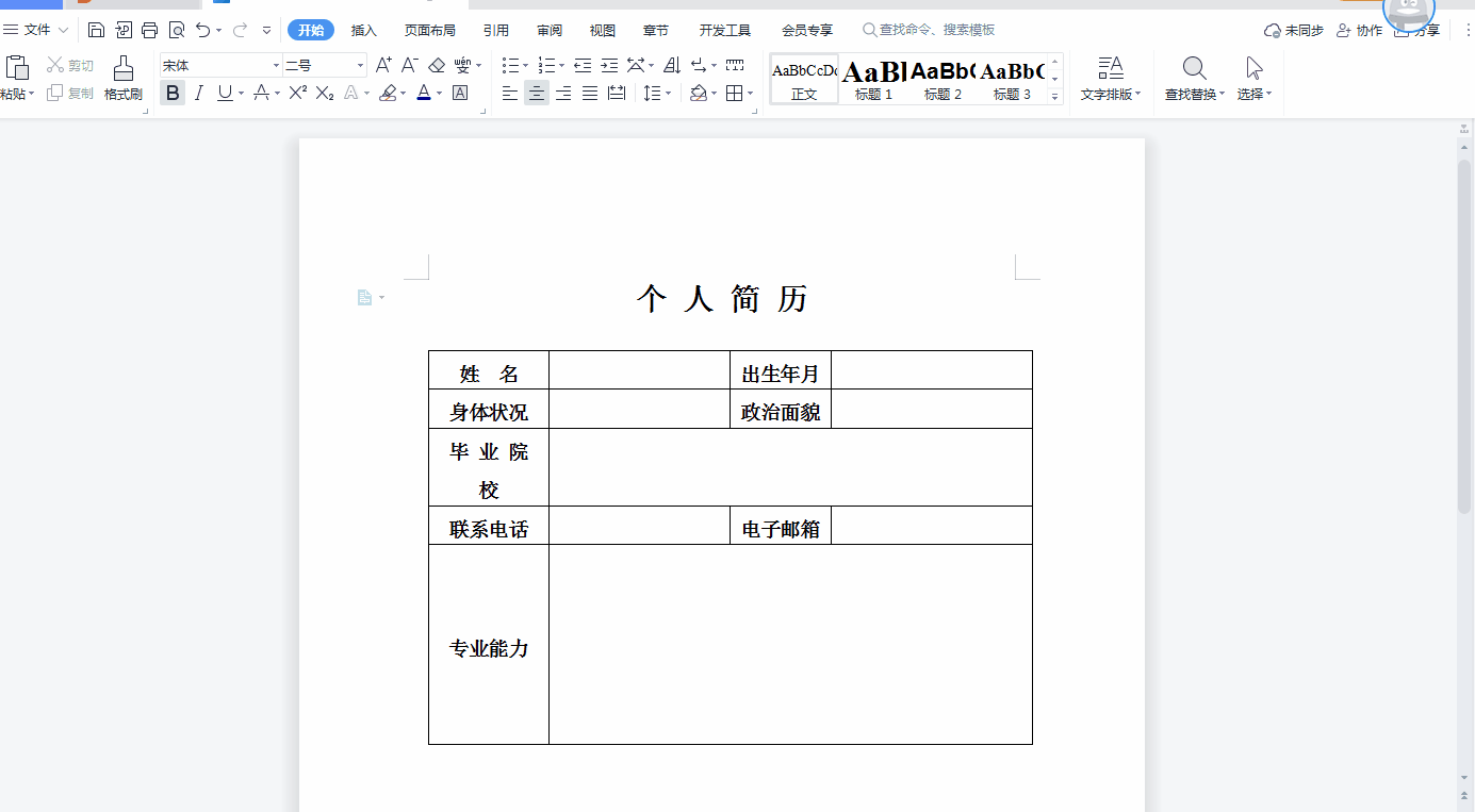 1、首先,我们以下面的简历模板为了,如下图