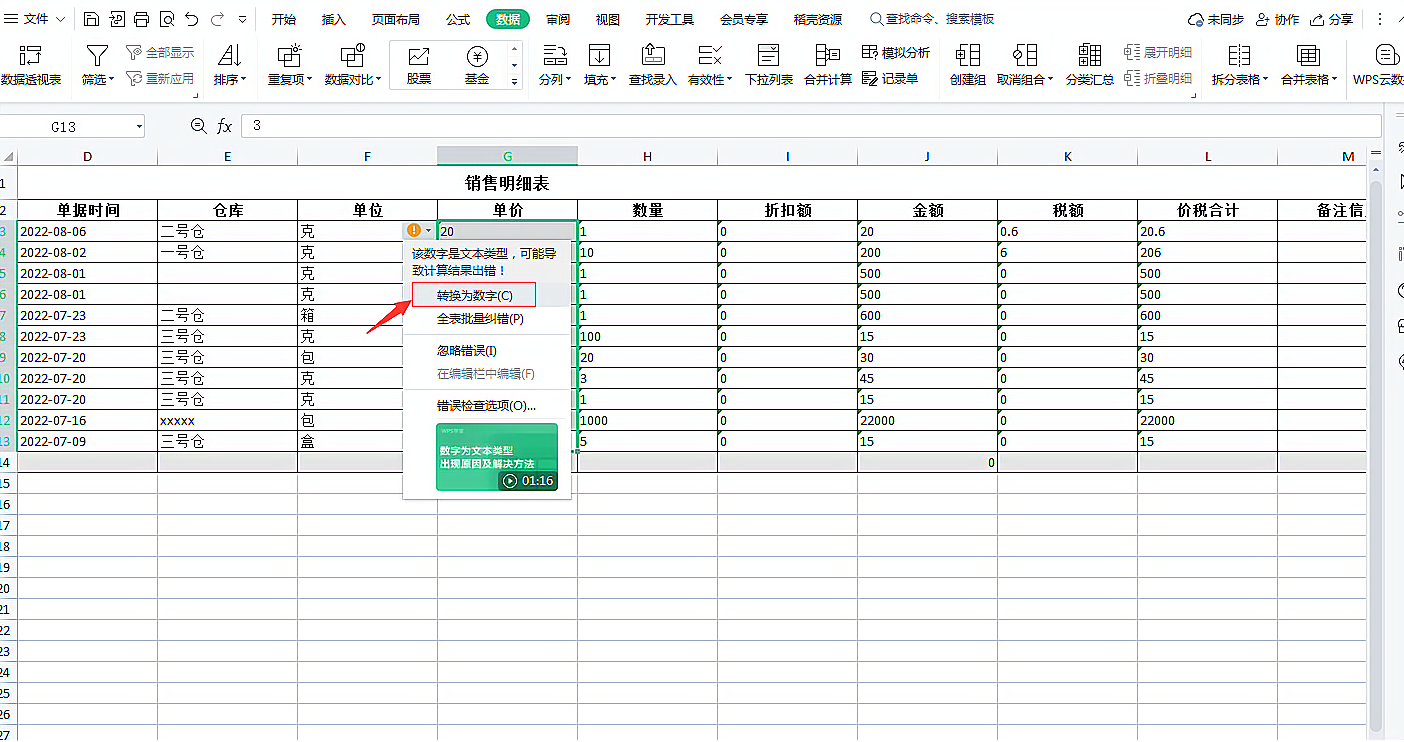 很多时候我们不小心把单元格格式设置成了文本数据格式,这样如果使用自动求和公式的话结果就会是0,那么我们就需要把单元格格式转换成数值格式,方法如下