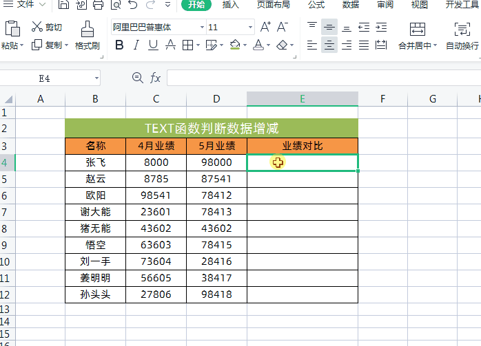 其实,TEXT函数支持条件区段格式如下图所示,可以用TEXT函数判断员工业绩增减情况,