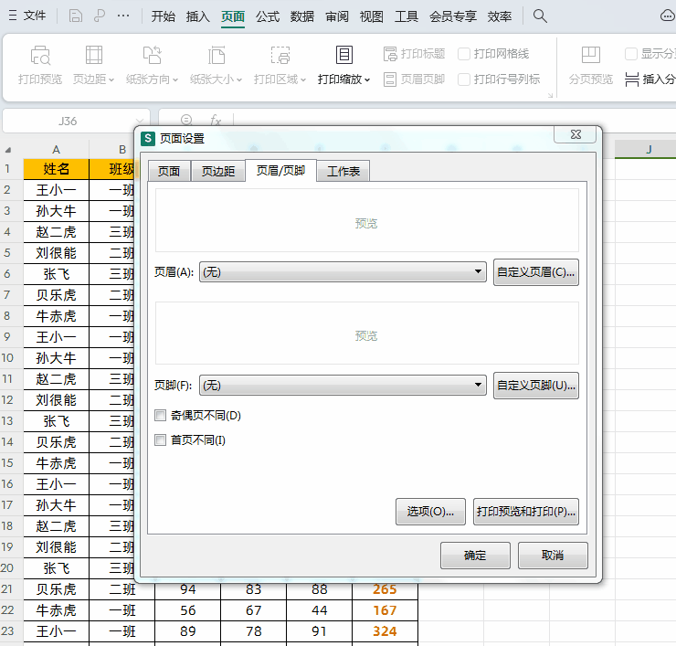 ①首先打开Excel表格,点击【页面】-【页眉页脚】调出“页面设置”窗口,如下图