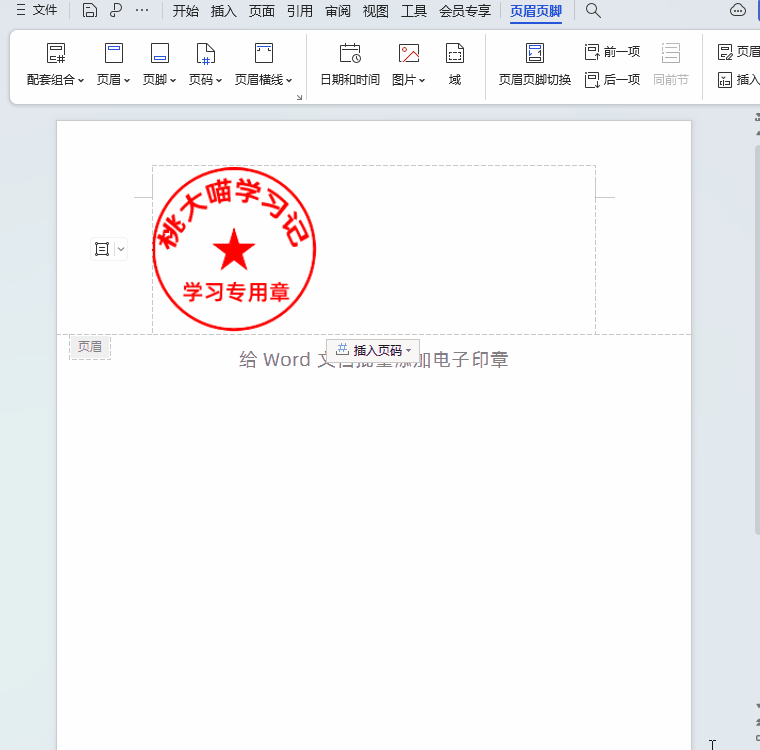 ④这样每页文档打印时就自动添加上了电子印章,如果想调整印章的位置,先点击电子印章,然后直接拖动印章就可以,如下图