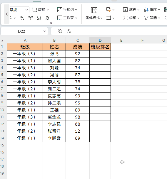如下图所示,这是一年级学生成绩,我们需要对每个班级学生成绩进行分组排名的话。
